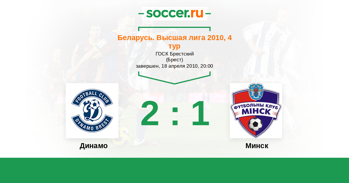Беларусь. Высшая лига 10.04.2011 Динамо Логотип футбольный клуб Динамо (Брест) 2:2 Логотип футбольный клуб Минск Минск