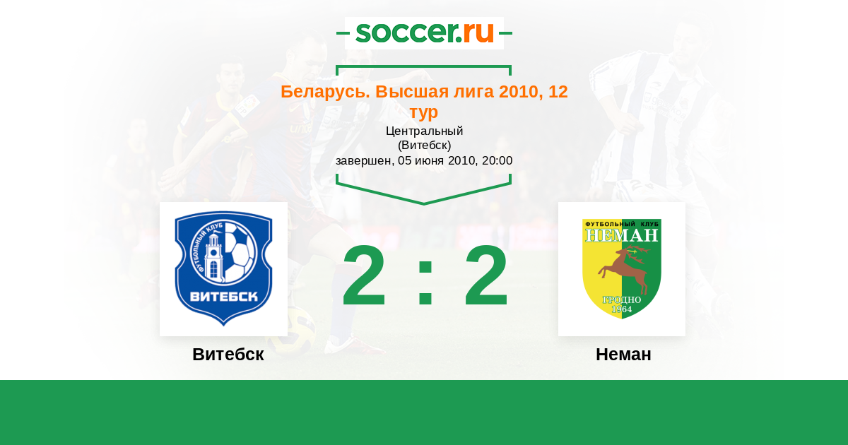 Беларусь. Высшая лига 26.06.2011 Витебск Логотип футбольный клуб Витебск 0:1 Логотип футбольный клуб Неман (Гродно) Неман