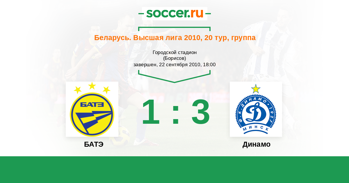 Беларусь. Высшая лига 11.05.2010 Динамо Логотип футбольный клуб Динамо (Минск) 0:1 Логотип футбольный клуб БАТЭ (Борисов) БАТЭ