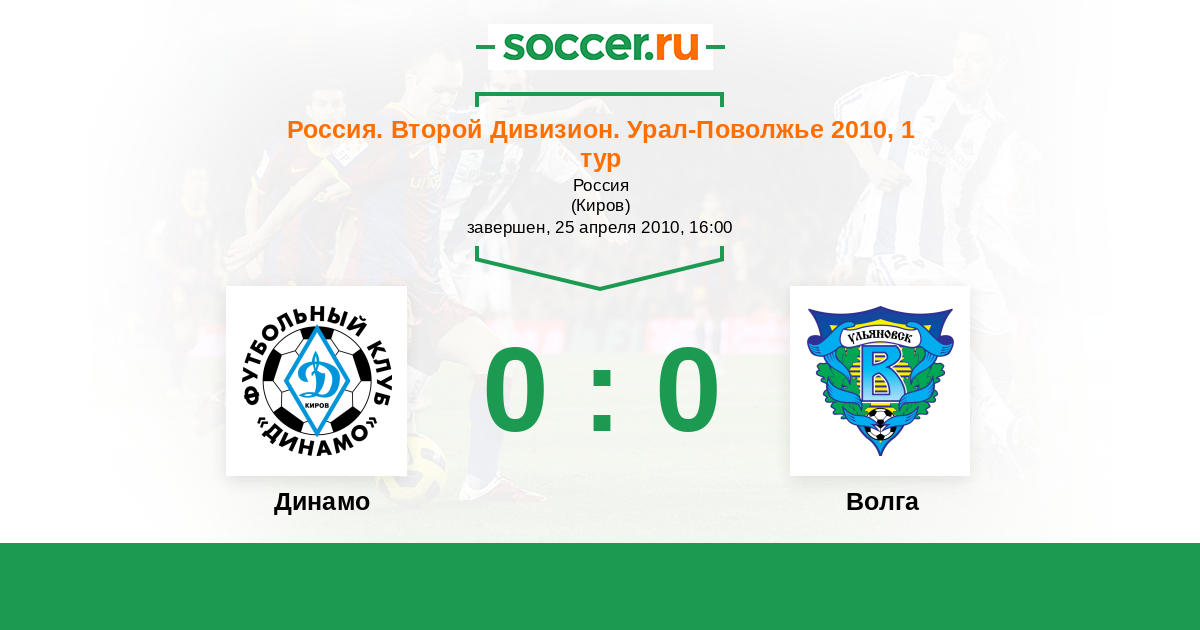 Россия. Вторая лига. Группа 4 14.05.2011 Волга Логотип футбольный клуб Волга (Ульяновск) 3:0 Логотип футбольный клуб Динамо Киров Динамо Киров