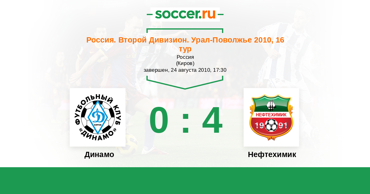 Россия. Вторая лига. Группа 4 19.05.2010 Нефтехимик Логотип футбольный клуб Нефтехимик (Нижнекамск) 1:1 Логотип футбольный клуб Динамо Киров Динамо Киров
