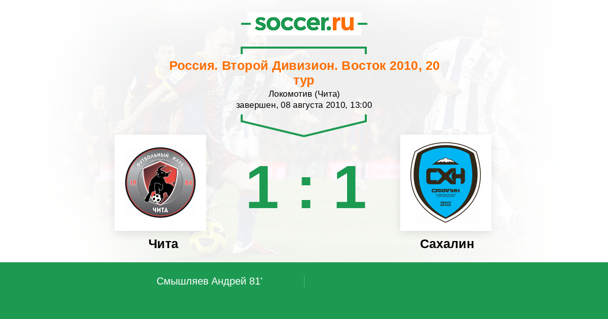 Россия. 2-й дивизион. Восток 11.06.2010 Сахалин Логотип футбольный клуб Сахалин (Южно-Сахалинск) 1:1 Логотип футбольный клуб Чита Чита