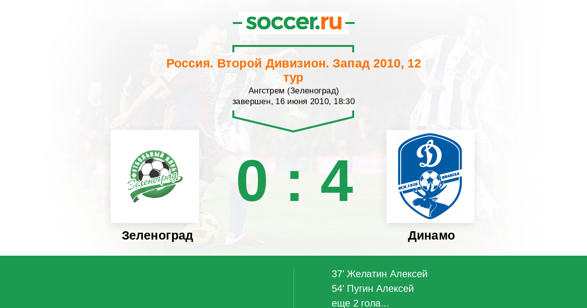 Россия. Вторая лига. Группа 2 18.07.2009 Зеленоград Логотип футбольный клуб Зеленоград (Москва) 1:0 Логотип футбольный клуб Динамо Вологда Динамо Вологда