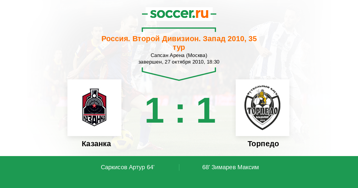 Россия. Вторая лига. Группа 2 30.09.2018 Торпедо Логотип футбольный клуб Торпедо (Владимир) 1:1 Логотип футбольный клуб Казанка (Москва) Казанка