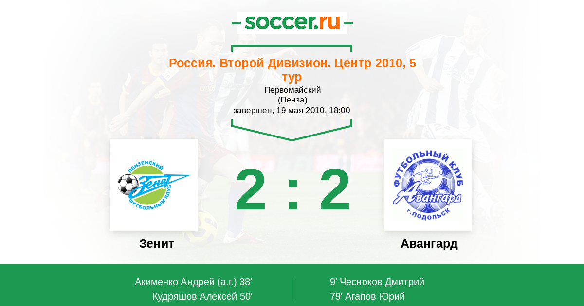 Россия. Вторая лига. Группа 3 24.08.2010 Авангард Логотип футбольный клуб Авангард (Подольск) 1:2 Логотип футбольный клуб Зенит (Пенза) Зенит