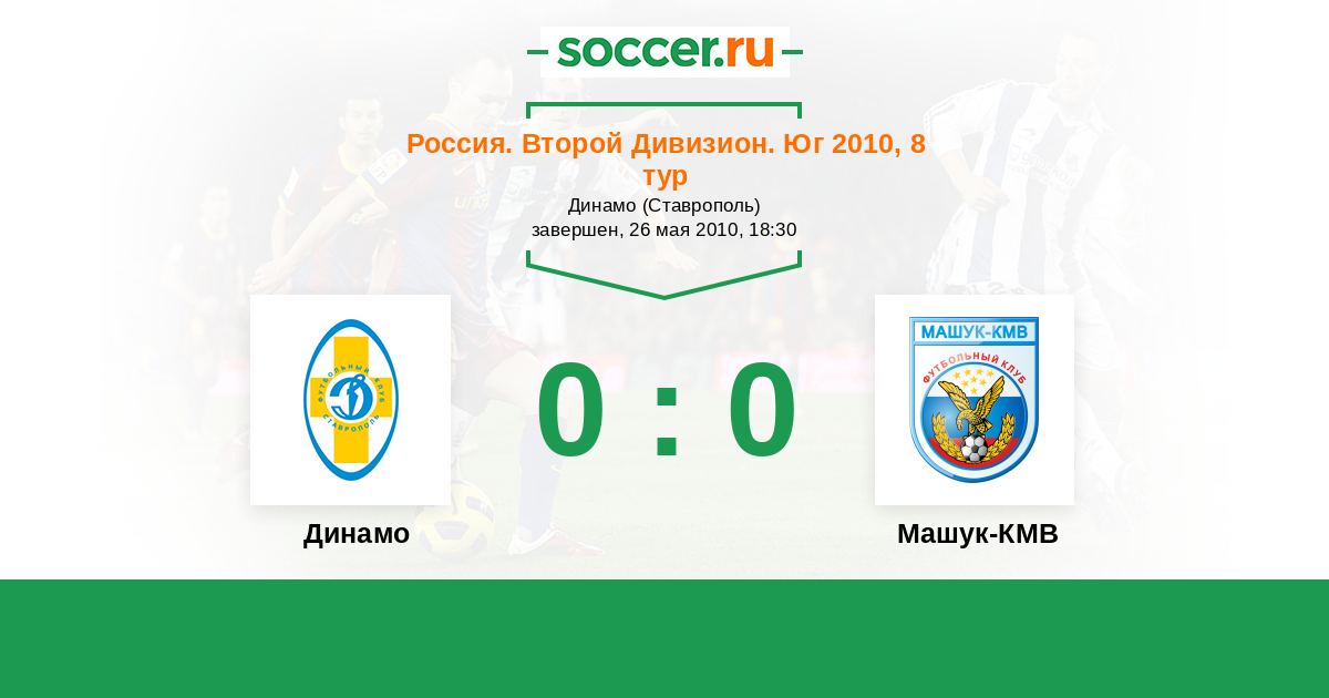 Россия. Вторая лига. Группа 1 06.09.2010 Машук-КМВ Логотип футбольный клуб Машук-КМВ (Пятигорск) 2:2 Логотип футбольный клуб Динамо Ставрополь Динамо Ставрополь
