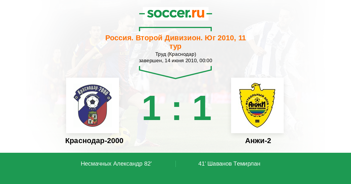 Россия. Вторая лига. Группа 1 18.09.2010 Краснодар-2000 Логотип футбольный клуб Краснодар-2000 4:0 Логотип футбольный клуб Ангушт (Назрань) Ангушт
