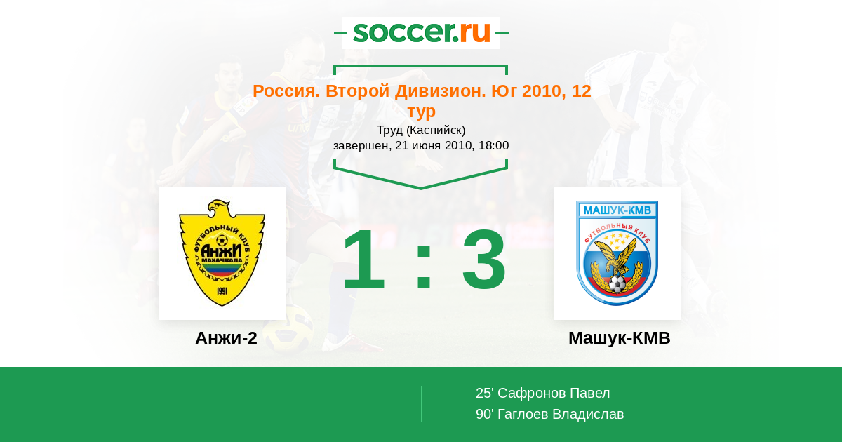 Россия. Вторая лига. Группа 1 13.09.2014 Машук-КМВ Логотип футбольный клуб Машук-КМВ (Пятигорск) 2:2 Логотип футбольный клуб Анжи-2 (Махачкала) Анжи-2