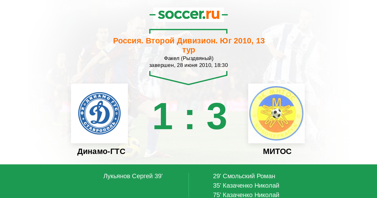 Россия. Вторая лига. Группа 1 13.10.2014 Динамо-ГТС Логотип футбольный клуб Динамо-ГТС (Ставрополь) 1:4 Логотип футбольный клуб МИТОС (Новочеркасск) МИТОС