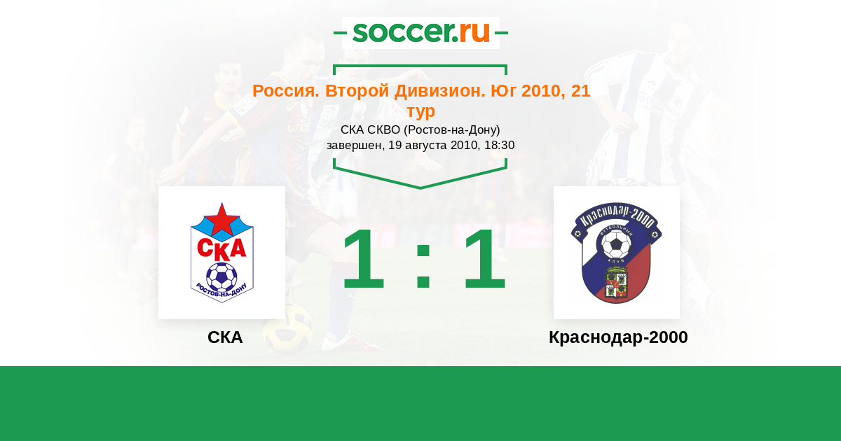 Россия. Вторая лига. Группа 1 06.05.2010 Краснодар-2000 Логотип футбольный клуб Краснодар-2000 1:1 Логотип футбольный клуб СКА (Ростов-на-Дону) СКА