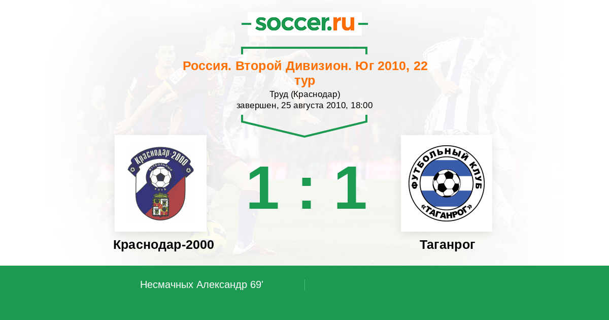 Россия. Вторая лига. Группа 1 04.10.2009 Краснодар-2000 Логотип футбольный клуб Краснодар-2000 2:0 Логотип футбольный клуб Таганрог Таганрог