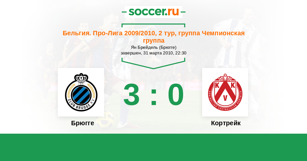 Бельгия. Про-Лига 30.12.2009 Кортрейк Логотип футбольный клуб Кортрейк 1:4 Логотип футбольный клуб Брюгге Брюгге