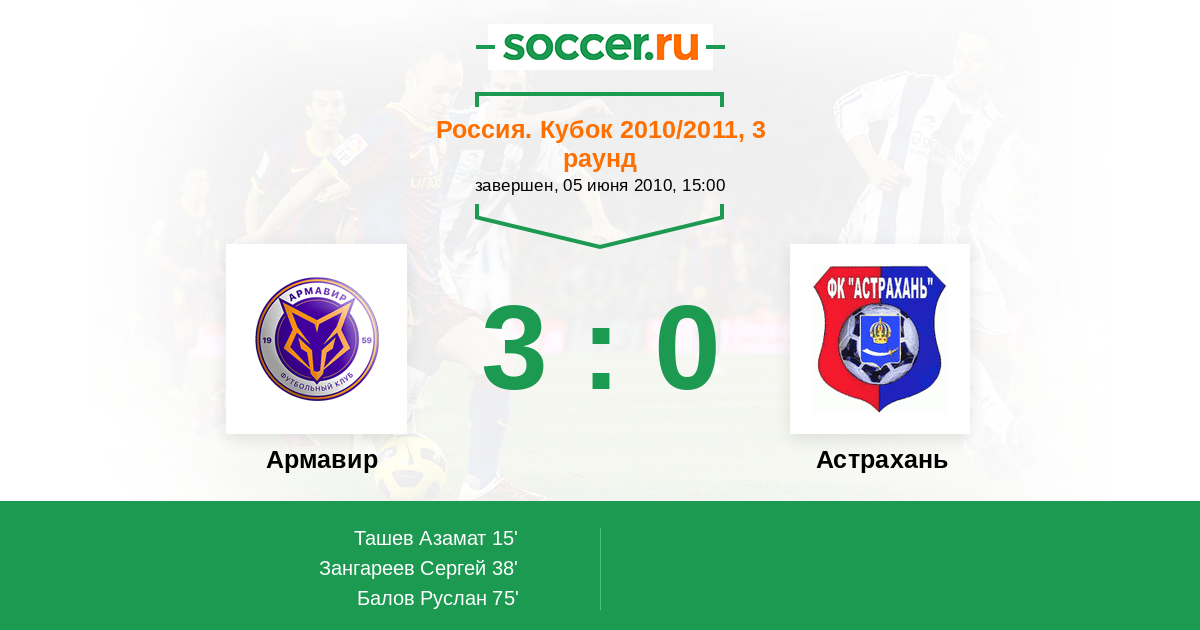 Россия. Вторая лига. Группа 1 21.06.2010 Астрахань Логотип футбольный клуб Астрахань 1:0 Логотип футбольный клуб Торпедо Армавир Торпедо Армавир