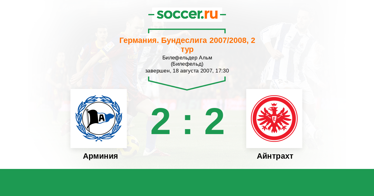 Германия. Бундеслига 08.02.2008 Айнтрахт Логотип футбольный клуб Айнтрахт (Франкфурт) 2:1 Логотип футбольный клуб Арминия (Билефельд) Арминия
