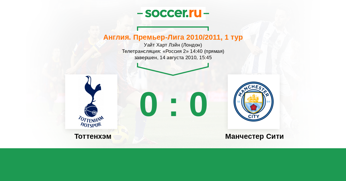 Англия. Премьер-Лига 28.08.2011 Тоттенхэм Логотип футбольный клуб Тоттенхэм (Лондон) 1:5 Логотип футбольный клуб Манчестер Сити Манчестер Сити