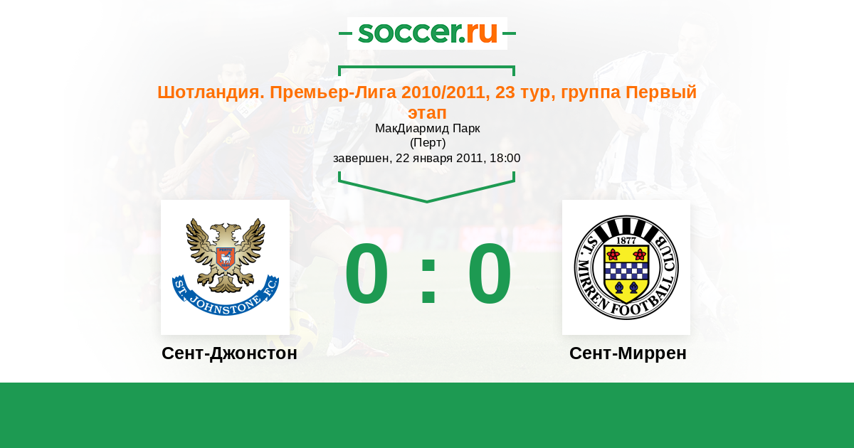 Шотландия. Премьер-Лига 11.12.2010 Сент-Миррен Логотип футбольный клуб Сент-Миррен (Пейсли) 1:2 Логотип футбольный клуб Сент-Джонстон (Перт) Сент-Джонстон