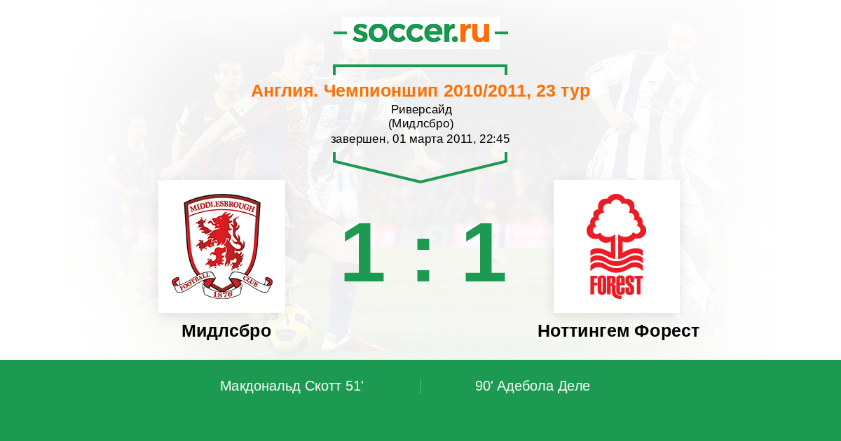 Англия. Чемпионшип 11.03.2014 Мидлсбро Логотип футбольный клуб Мидлсбро 1:1 Логотип футбольный клуб Ноттингем Форест Ноттингем Форест
