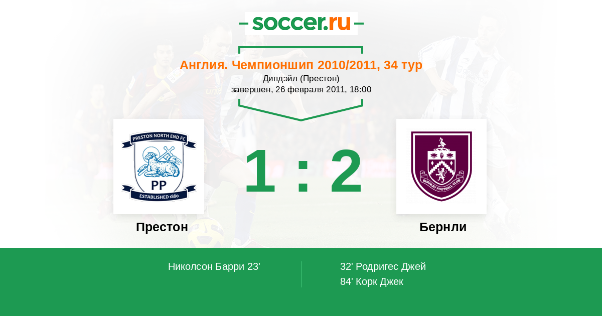 Англия. Чемпионшип 11.09.2010 Бернли Логотип футбольный клуб Бернли 4:3 Логотип футбольный клуб Престон Престон