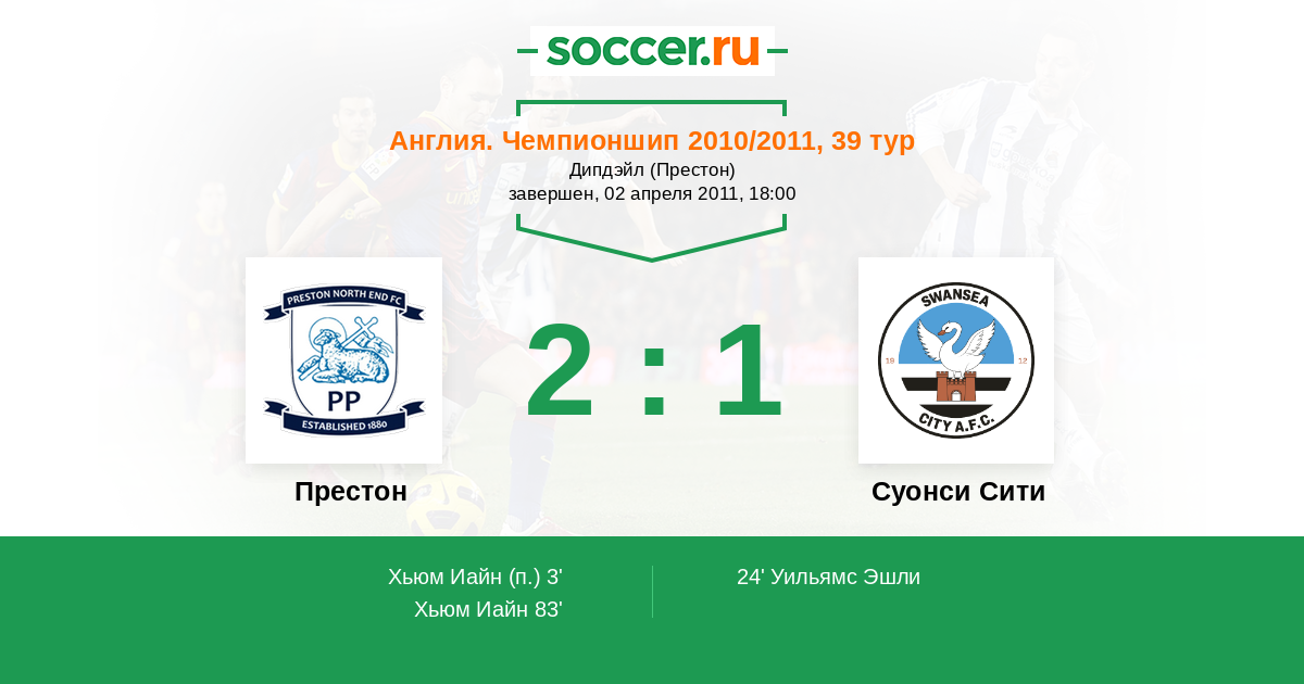 Англия. Чемпионшип 05.11.2025 Престон Логотип футбольный клуб Престон 2:1 Логотип футбольный клуб Суонси Сити Суонси Сити