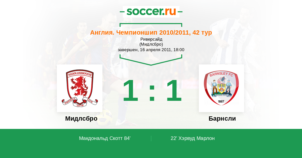 Англия. Чемпионшип 06.03.2012 Мидлсбро Логотип футбольный клуб Мидлсбро 2:0 Логотип футбольный клуб Барнсли Барнсли