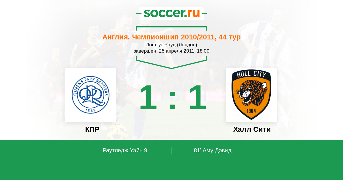 Англия. Чемпионшип 29.01.2011 Халл Сити Логотип футбольный клуб Халл Сити (Кингстон-апон-Халл) 0:0 Логотип футбольный клуб КПР (Лондон) КПР