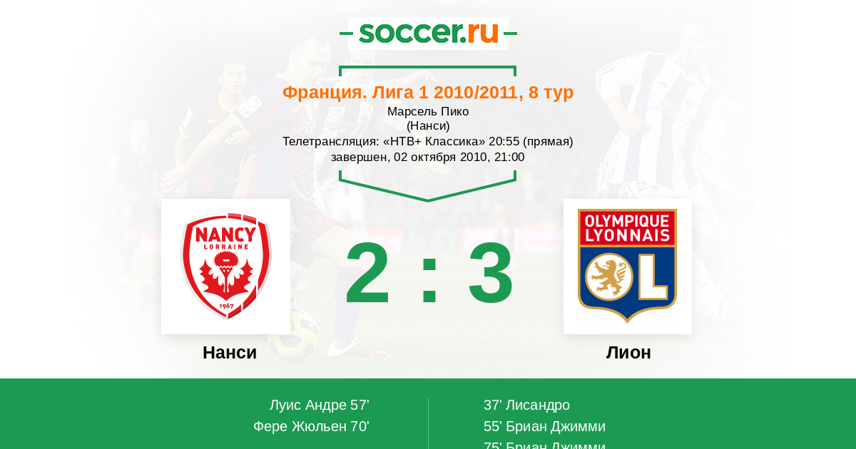Франция. Лига 1 18.02.2011 Лион Логотип футбольный клуб Лион 4:0 Логотип футбольный клуб Нанси Нанси