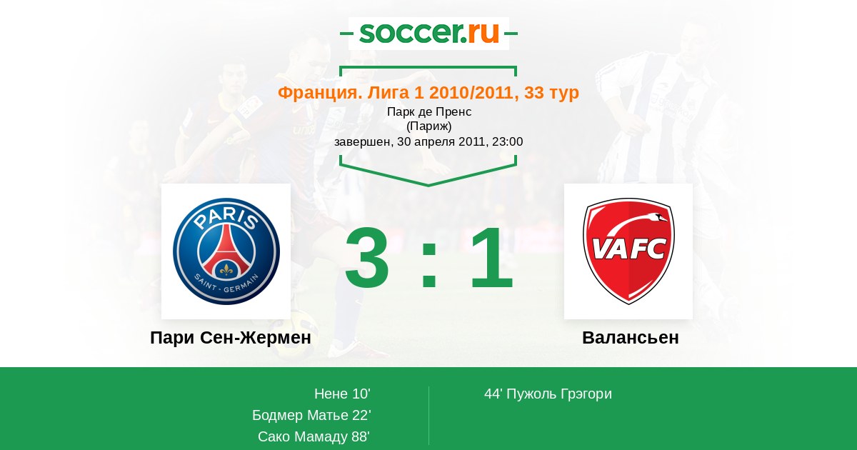 Матчи Франция. Лига 1 2010/2011