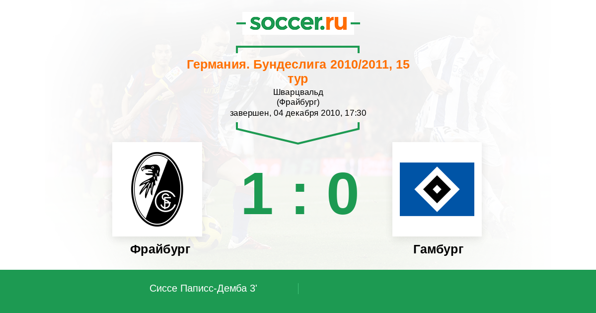 Германия. Бундеслига 30.04.2011 Гамбург Логотип футбольный клуб Гамбург 0:2 Логотип футбольный клуб Фрайбург Фрайбург