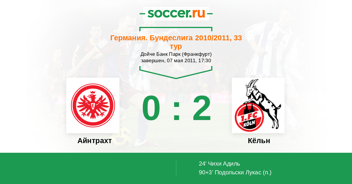 Германия. Бундеслига 30.01.2010 Айнтрахт Логотип футбольный клуб Айнтрахт (Франкфурт) 1:2 Логотип футбольный клуб Кёльн Кёльн