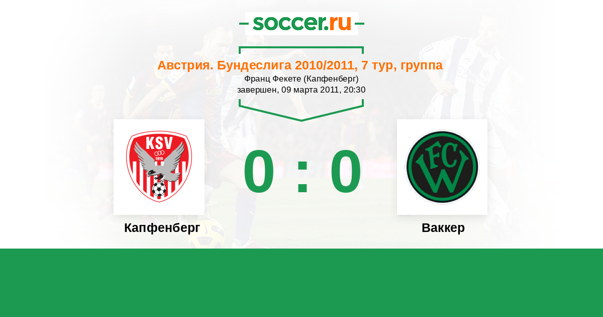 Австрия. Бундеслига 22.09.2010 Капфенберг Логотип футбольный клуб Капфенберг 2:4 Логотип футбольный клуб Ваккер (Инсбрук) Ваккер