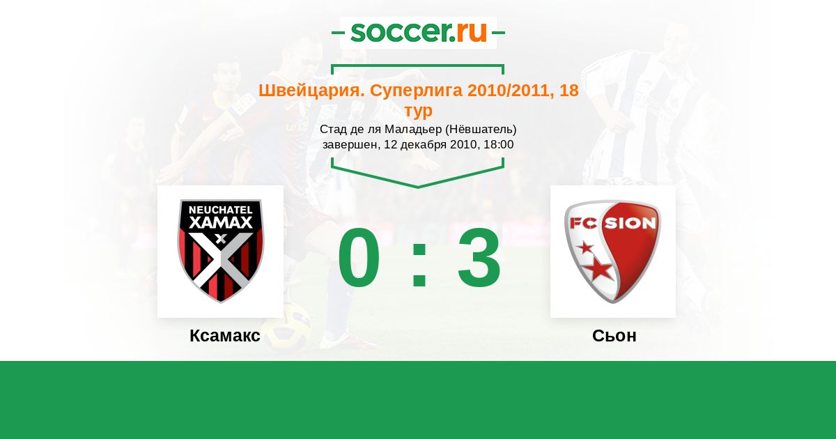 Швейцария. Суперлига 23.09.2010 Сьон Логотип футбольный клуб Сьон 1:2 Логотип футбольный клуб Ксамакс (Невшатель) Ксамакс