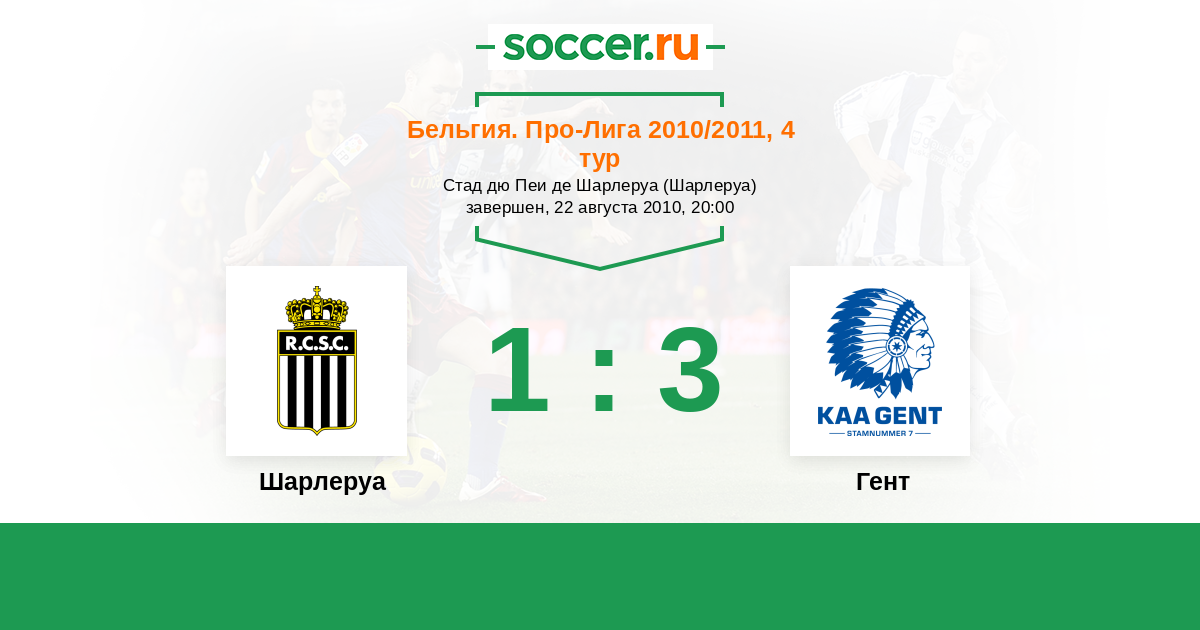 Бельгия. Про-Лига 11.12.2010 Гент Логотип футбольный клуб Гент 2:1 Логотип футбольный клуб Шарлеруа Шарлеруа