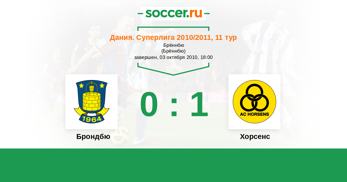 Дания. Суперлига 14.11.2010 Хорсенс Логотип футбольный клуб Хорсенс 2:1 Логотип футбольный клуб Брондбю (Брённбю) Брондбю