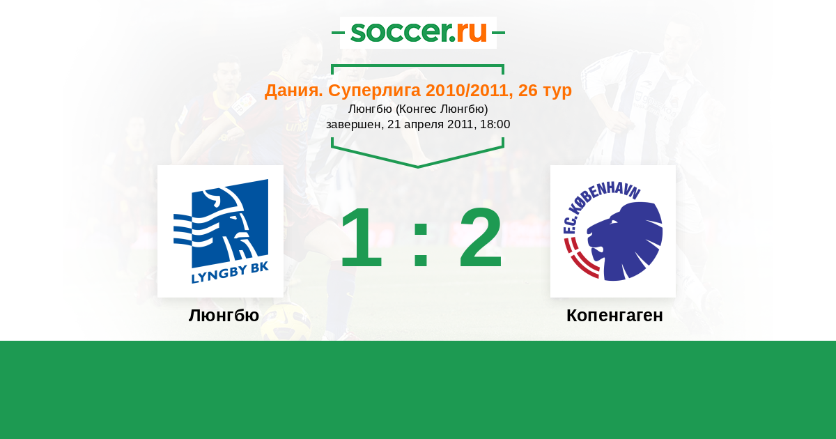 Дания. Суперлига 10.09.2011 Люнгбю Логотип футбольный клуб Люнгбю (Конгес Люнгбю) 0:1 Логотип футбольный клуб Копенгаген Копенгаген