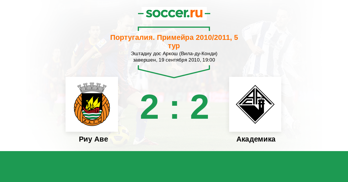 Португалия. Примейра 20.02.2011 Академика Логотип футбольный клуб Академика (Коимбра) 0:1 Логотип футбольный клуб Риу Аве (Вила-ду-Конди) Риу Аве