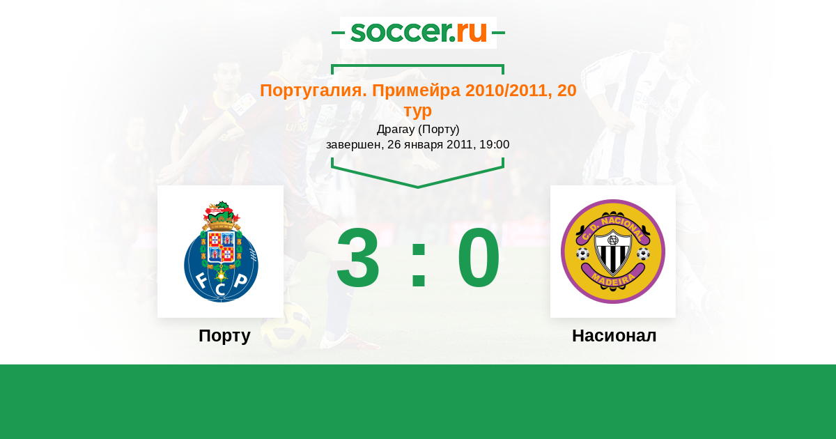 Португалия. Примейра 23.10.2011 Порту Логотип футбольный клуб Порту 5:0 Логотип футбольный клуб Насионал (Фуншал) Насионал