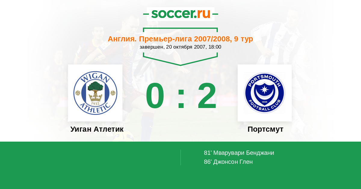 Англия. Премьер-Лига 03.02.2007 Уиган Атлетик Логотип футбольный клуб Уиган Атлетик 1:0 Логотип футбольный клуб Портсмут Портсмут