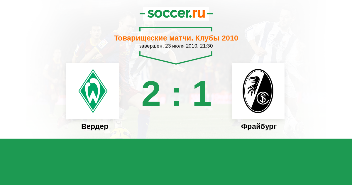 Германия. Бундеслига 10.04.2010 Вердер Логотип футбольный клуб Вердер (Бремен) 4:0 Логотип футбольный клуб Фрайбург Фрайбург