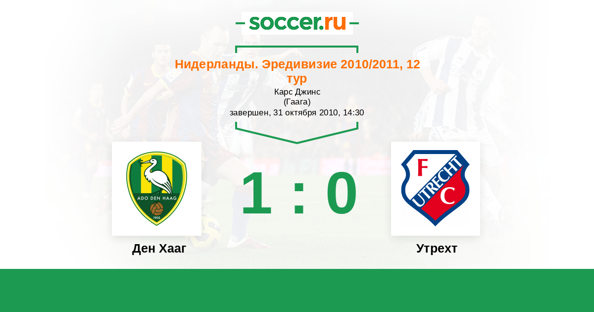 Нидерланды. Эредивизи 21.10.2012 Ден Хааг Логотип футбольный клуб Ден Хааг (Гаага) 1:2 Логотип футбольный клуб Утрехт Утрехт