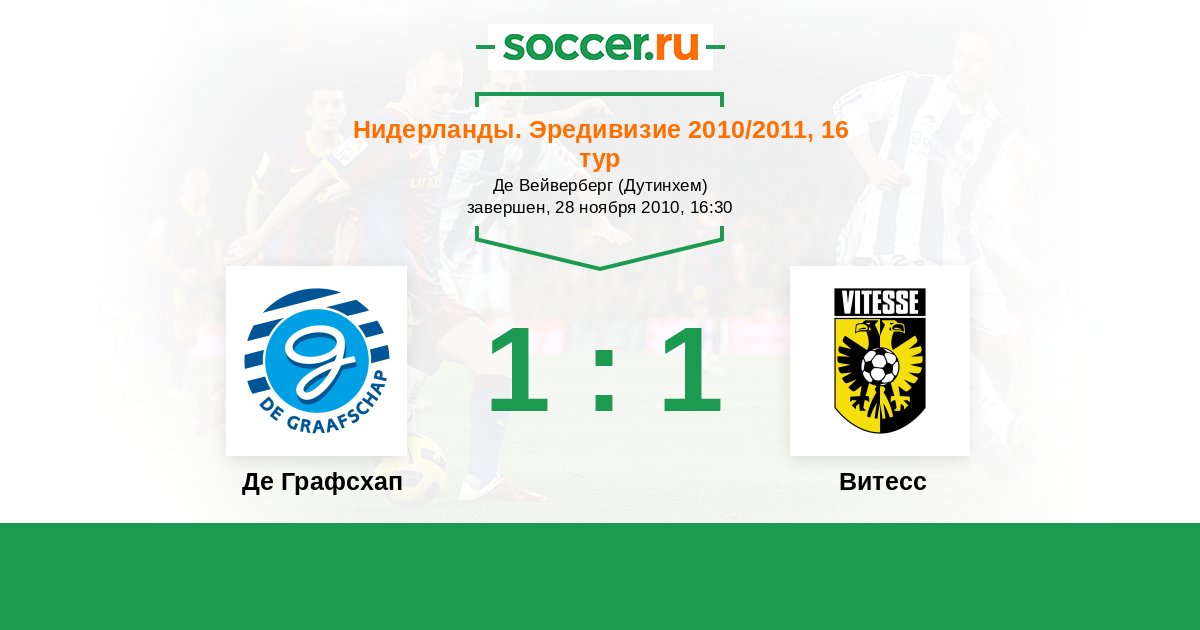 Нидерланды. Эредивизи 20.02.2011 Витесс Логотип футбольный клуб Витесс (Арнем) 2:0 Логотип футбольный клуб Де Графсхап (Дутинхем) Де Графсхап