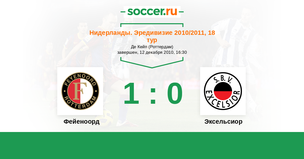 Нидерланды. Эредивизи 15.08.2010 Эксельсиор Логотип футбольный клуб Эксельсиор (Роттердам) 3:2 Логотип футбольный клуб Фейеноорд (Роттердам) Фейеноорд