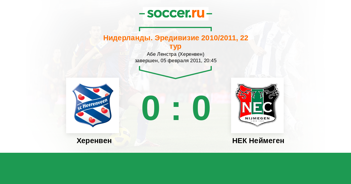 Нидерланды. Эредивизи 19.03.2010 Херенвен Логотип футбольный клуб Херенвен 4:1 Логотип футбольный клуб НЕК Неймеген НЕК Неймеген
