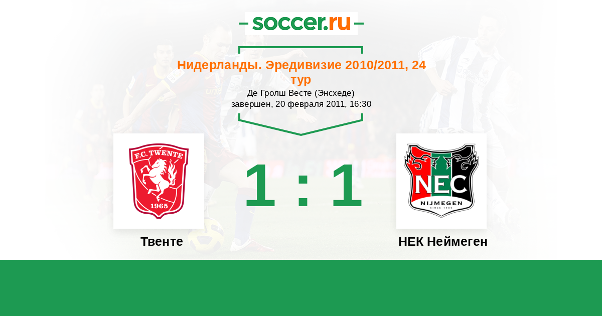 Нидерланды. Эредивизи 10.12.2011 Твенте Логотип футбольный клуб Твенте (Энсхеде) 2:0 Логотип футбольный клуб НЕК Неймеген НЕК Неймеген