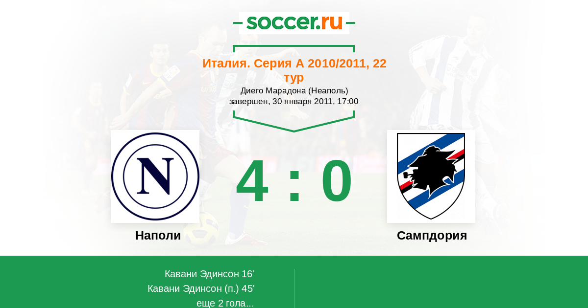 Италия. Серия А 24.01.2016 Сампдория Логотип футбольный клуб Сампдория (Генуя) 2:4 Логотип футбольный клуб Наполи (Неаполь) Наполи