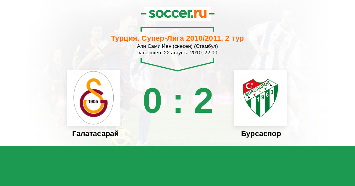 Турция. Суперлига 25.04.2010 Галатасарай Логотип футбольный клуб Галатасарай (Стамбул) 0:0 Логотип футбольный клуб Бурсаспор Бурсаспор