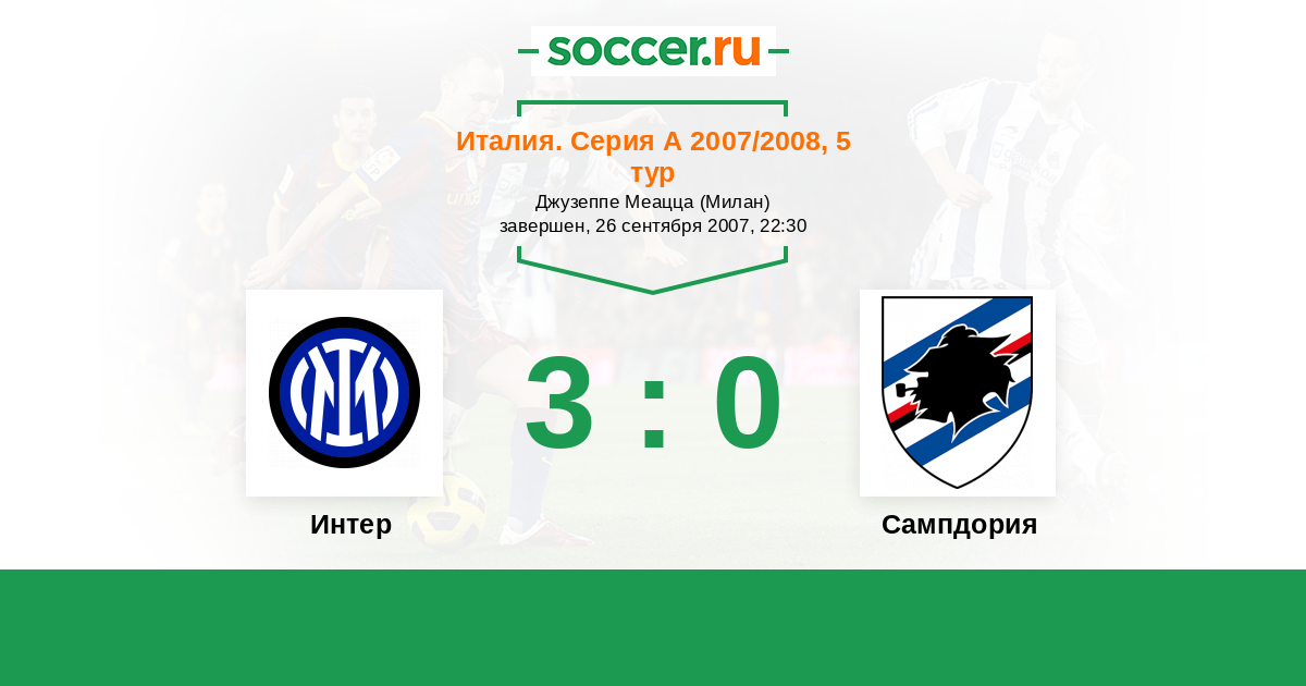 Италия. Серия А 30.08.2008 Сампдория Логотип футбольный клуб Сампдория (Генуя) 1:1 Логотип футбольный клуб Интер (Милан) Интер