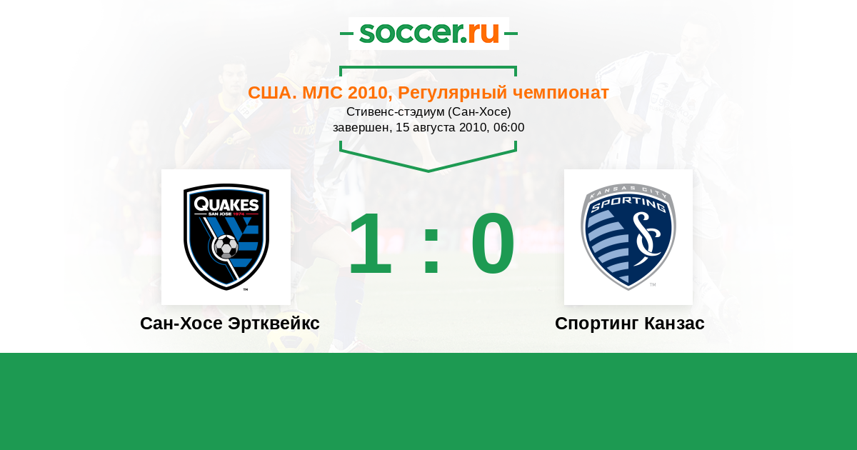 США. МЛС 18.06.2011 Спортинг Канзас Логотип футбольный клуб Спортинг Канзас (Канзас-Сити) 1:0 Логотип футбольный клуб Сан-Хосе Эртквейкс Сан-Хосе Эртквейкс