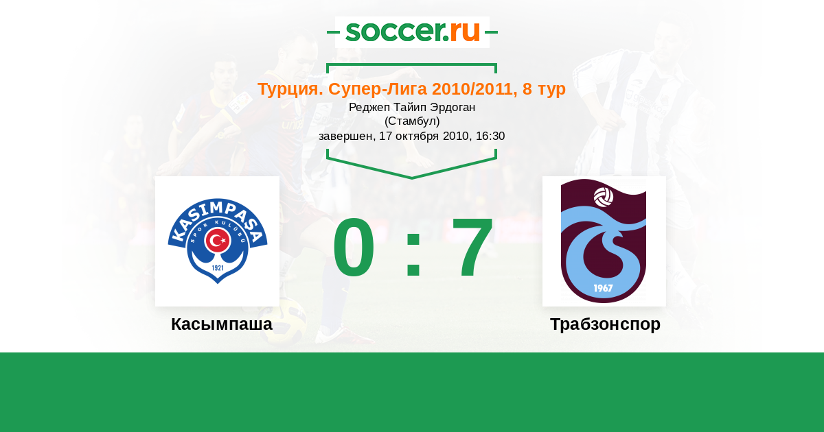 Турция. Суперлига 12.03.2011 Трабзонспор Логотип футбольный клуб Трабзонспор 1:0 Логотип футбольный клуб Касымпаша (Стамбул) Касымпаша