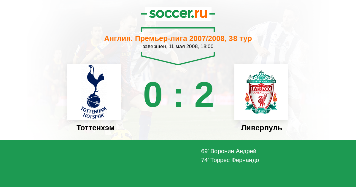 Англия. Премьер-Лига 01.11.2008 Тоттенхэм Логотип футбольный клуб Тоттенхэм (Лондон) 2:1 Логотип футбольный клуб Ливерпуль Ливерпуль