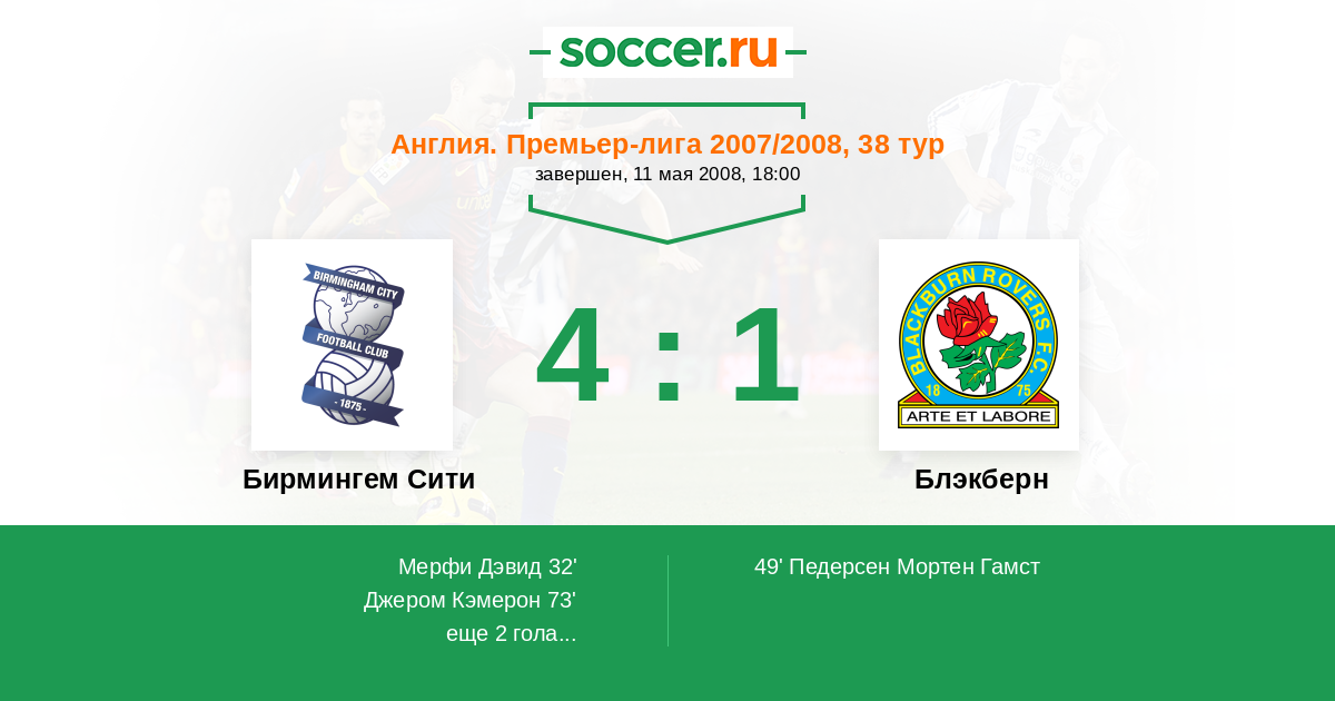 Англия. Премьер-Лига 18.04.2006 Бирмингем Сити Логотип футбольный клуб Бирмингем Сити 2:1 Логотип футбольный клуб Блэкберн Блэкберн